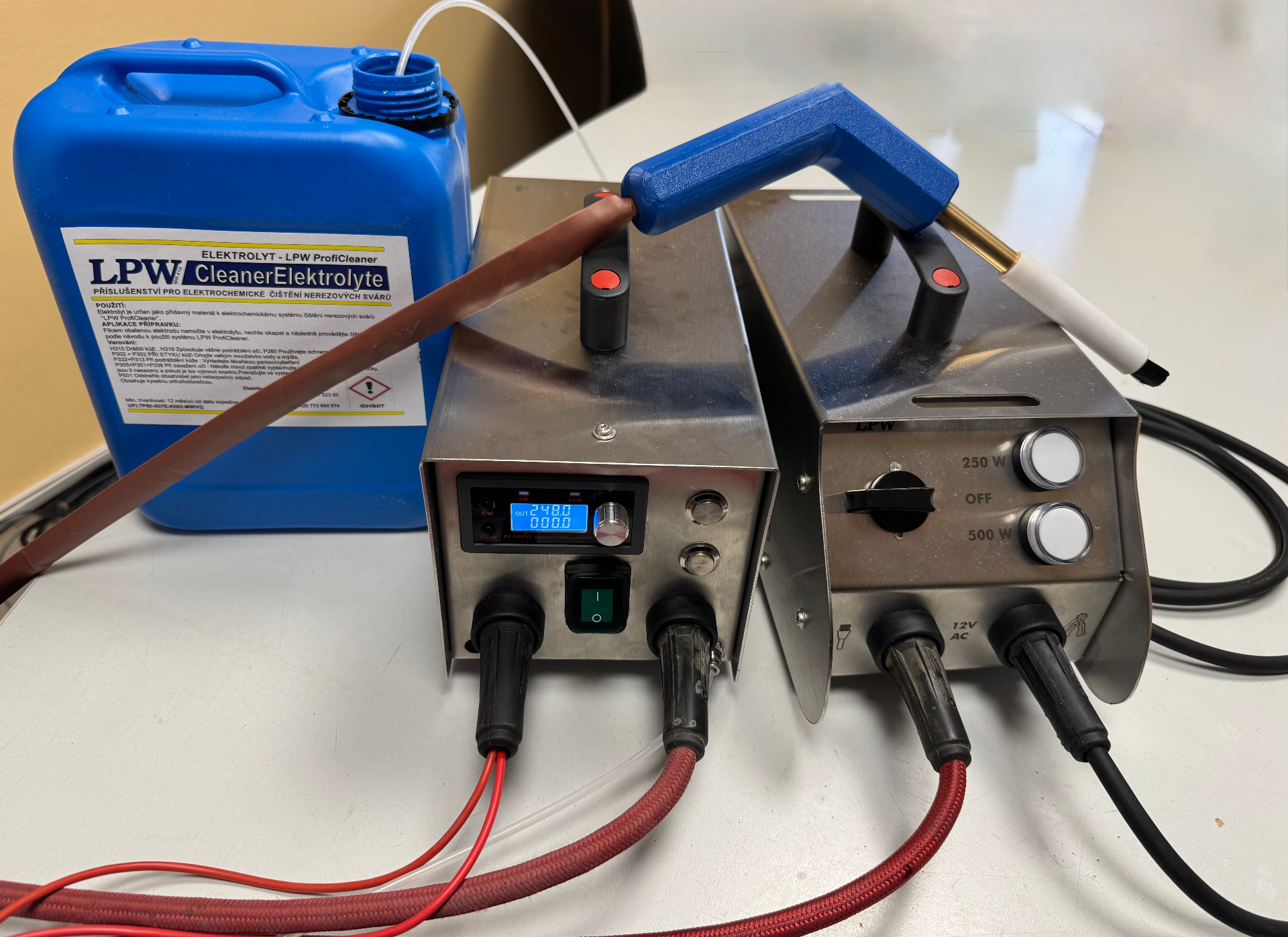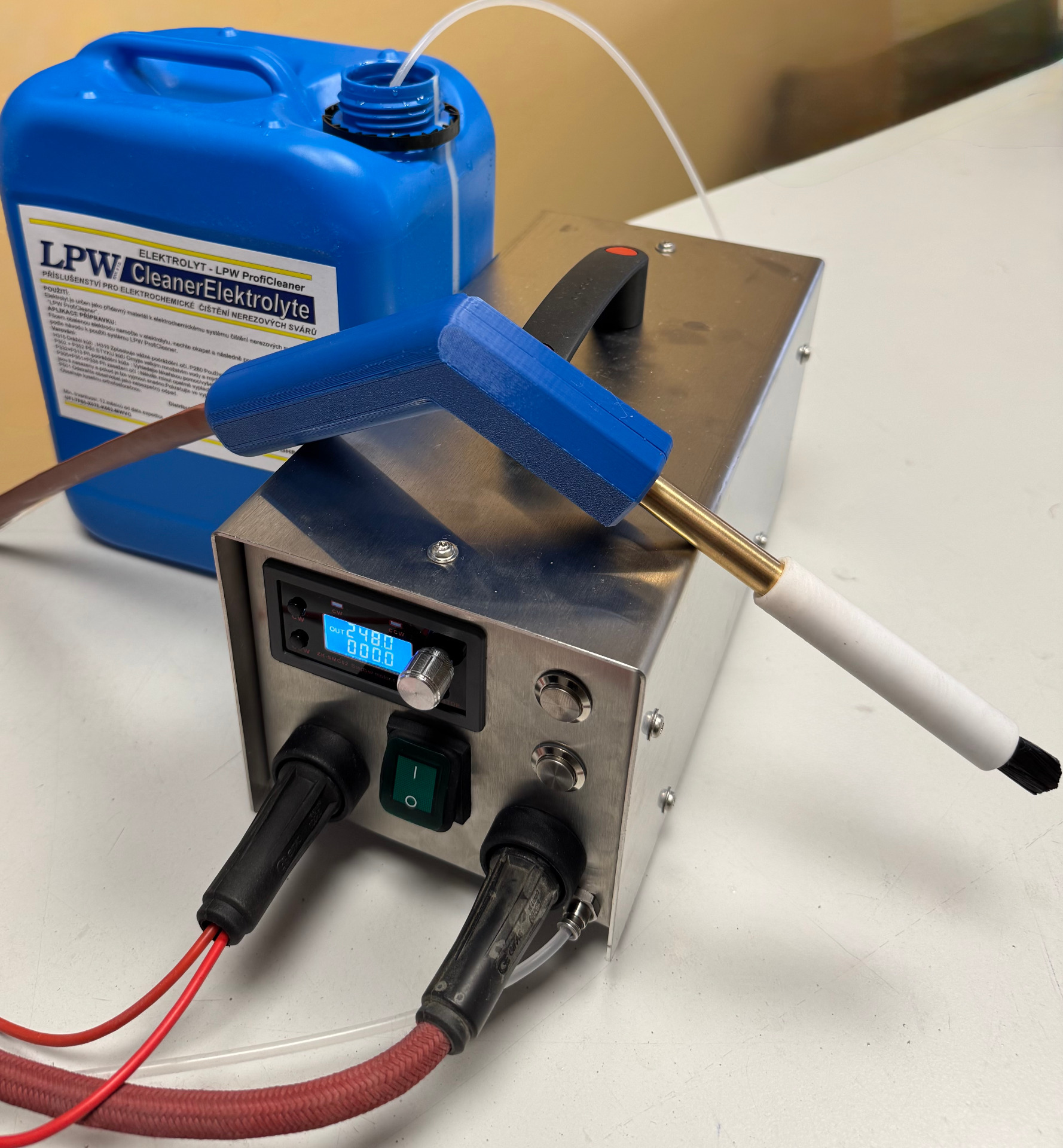 Toto vysoce efektivní zařízení s trvalým čištěním grafitovým štětcem nebo uhlíkovou elektrodou je ideálním pomocníkem pro rychlé a ekologické odstraňování zbarvení oxidační vrstvy ze svárů na nerezových materiálech.